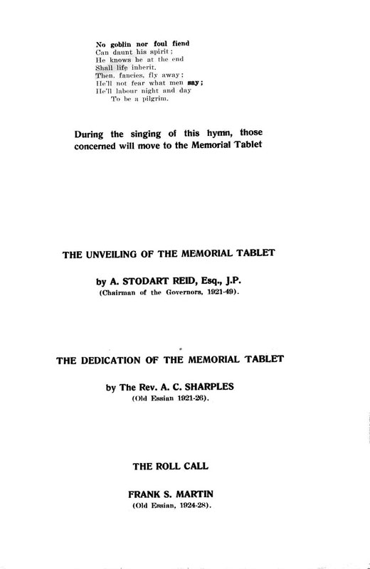 Below is the Order of Service of the Dedication of the Second World War Memorial - Courtesy of Mike Mellor
